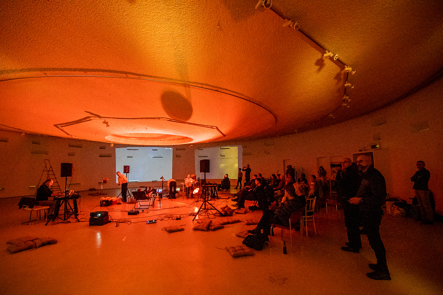 The resemblance of the interior of the Kunstkapel to the space station seen in Tarkovsky’s science fiction film has been frequently noted. This project was designed to bring a group of individual artists together as members of a research expedition. Solaris provides us with a set of issues in terms of AudioVisualSpatial that are demanding and the team will offer their own unique findings. On board for this first mission are Daniela de Paulis, German Popov, Justin Bennett and Roelf Toxopeus (BMBcon), and neuroscientist Robert Oostenveld.
