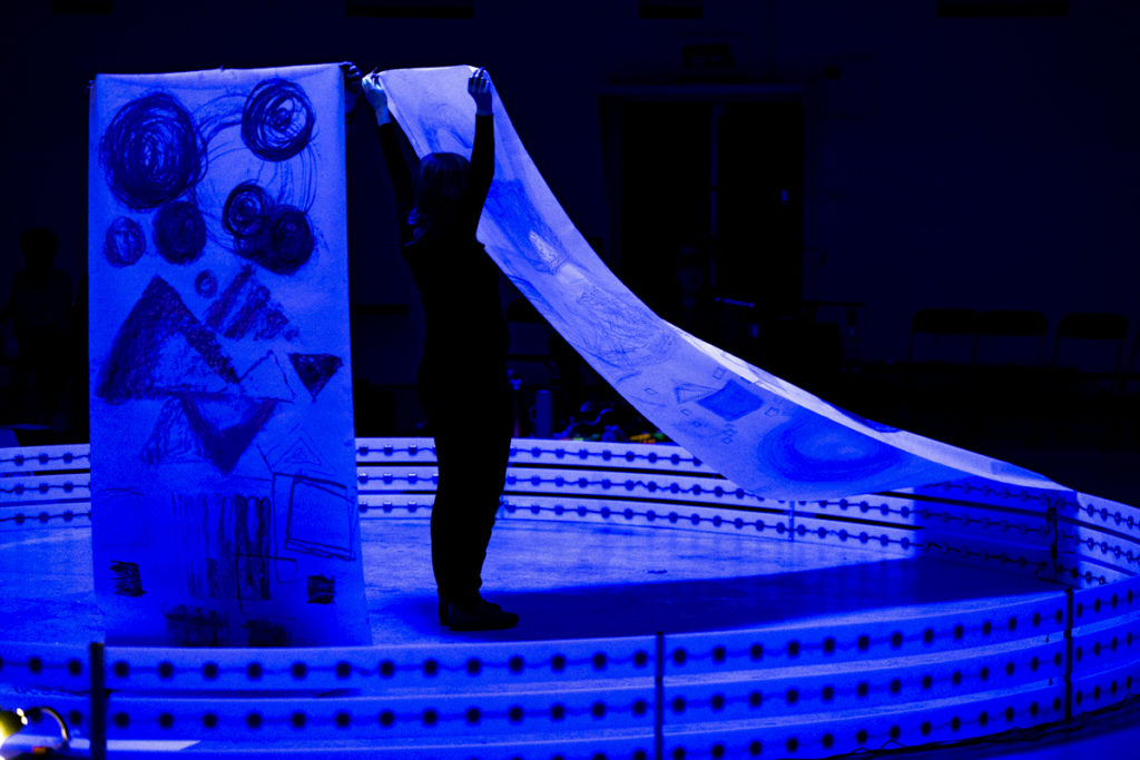 The second piece of the evening will rely on the harmonization of the human voice with singers spread like tuning forks throughout the space. The Schoolalmamahler will perform a work derived from the teaching of Gertrud Grunow. Grunow was the only music director and female instructor at the Bauhaus in the Weimar years. Her focus was on vocal pedagogy and she centered this on the alignment of colour, sound and form. Grunow’s 12 Tone Circle of Colour was inspired by modernist composers Arnold Schönberg’s atonal music theory. But it was also an important collaboration with Bauhaus director Johannes Itten’s colour circles. The Schoolalmamahler was recently established to perform the secret songs of Alma Mahler, including the recently discovered seventeenth extant song entitled Lonely Walk which will be presented in the next program of The Warp.